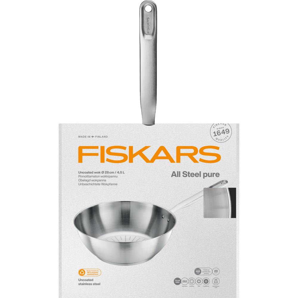 Сковорода WOK Fiskars All Steel pure 28 см (1065629) изготовленная из экологически чистой высококачественной нержавеющей стали, предлагает непревзойденную функциональность для всех типов приготовления пищи, с уникальной гравировкой поверхности без покрытия, которая особенно хорошо подходит для жарки при высоких температурах и подрумянивания. Практически неразрушимая, корпус и ручка этой сковороды из нержавеющей стали 18/10 изготовлены на 90% из переработанных материалов а трехслойное дно оптимизировано для эффективного и равномерного распределения тепла. Эта сковорода Wok подходит для использования на всех типах плит, выдерживает температуру до 270° C и имеет 25-летнюю гарантию.