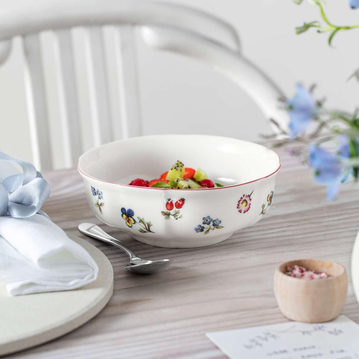 Миска для закусок Petite Fleur Villeroy & Boch (1023953900) Это элегантное и универсальное изделие, которое прекрасно подойдёт для подачи закусок, десертов, соусов или небольших порций салатов. Нежный цветочный декор в многоцветной гамме придаёт посуде лёгкость и изысканность, создавая уютную атмосферу за столом. Диаметр около 14,8 см и объём ~360 мл делают миску удобной и практичной для повседневного использования. Благодаря оптимальной высоте она подходит как для сухих, так и для жидких блюд, обеспечивая комфорт при подаче. Изделие выполнено из премиального фарфора, который отличается высокой прочностью и долговечностью. Он сохраняет привлекательный внешний вид даже при регулярном использовании, оставаясь устойчивым к износу. Коллекция Petite Fleur известна своим романтичным стилем и гармонично вписывается в любую сервировку — от повседневной до праздничной. Такая миска станет стильным дополнением сервиза и подчеркнёт эстетику подачи ваших любимых блюд.