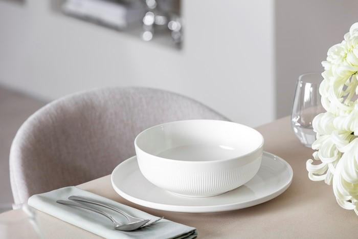 Салатница 19 см Afina Villeroy & Boch (1042933180) Это изящный и универсальный предмет сервировки, созданный для красивой подачи блюд. Изготовленная из фарфора премиум-класса, она отличается высокой прочностью, долговечностью и безупречно гладкой поверхностью. Классический белый цвет и утончённый рельеф коллекции Afina придают салатнице элегантный и сдержанный вид, благодаря чему она легко сочетается с другой посудой и подходит как для повседневного использования, так и для праздничного стола. Оптимальный размер идеально подходит для подачи салатов, закусок, фруктов или десертов. Салатница Afina от Villeroy & Boch — это гармоничное сочетание функциональности, качества и фирменного стиля, которое подчеркнёт эстетику сервировки и ваше внимание к деталям.