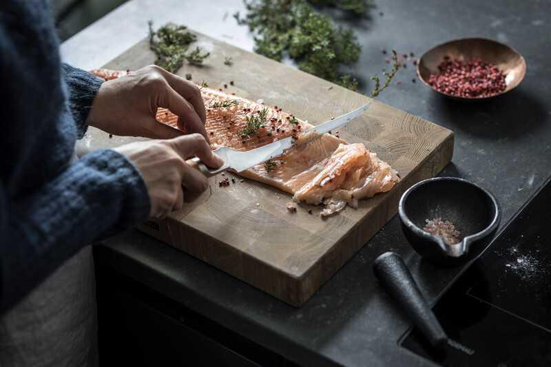 Филейный нож Fiskars Norden 20,3 см (1026423) имеет длинное и гибкое лезвие идеально подходит для филе рыбы. Лезвие высшего качества изготовлено из высокоэффективной высокоуглеродистой немецкой стали, которая обеспечивает превосходные эксплуатационные характеристики и длительную остроту. Отличная резкость дополнительно обеспечивается оптимальным углом заточки 26?. Рукоятка ножа изготовлена ??из финской березы, прошедшей термообработку, что делает нож очень удобным и красивым.