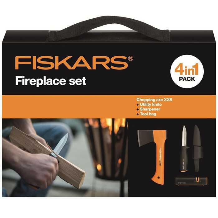 Набор для розжига костра Fiskars Fireplace Set (1025441) в который входят качественные инструменты Fiskars в подарочной упаковке. Состоит из сумки для хранения инструментов, топора Fiskars XXS X5 (1015617), универсального ножа Fiskars Solid K40 (1001622) и точилки для топоров и ножей Fiskars Xsharp™ (1000601).